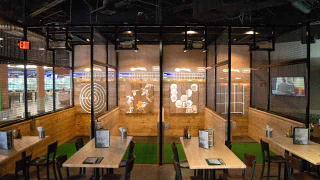 Strikz’s axe throwing experience lets guests compete for high scores by aiming at wooden targets, making it a fun and exciting activity for social gatherings and celebrations.