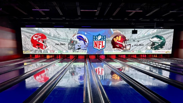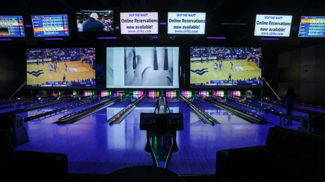Strikz offers 20 state-of-the-art bowling lanes with a 120' video wall, computerized scoring, automatic bumpers, a variety of ball weights, ramps for kids, and convenient lane-side food and beverage service.